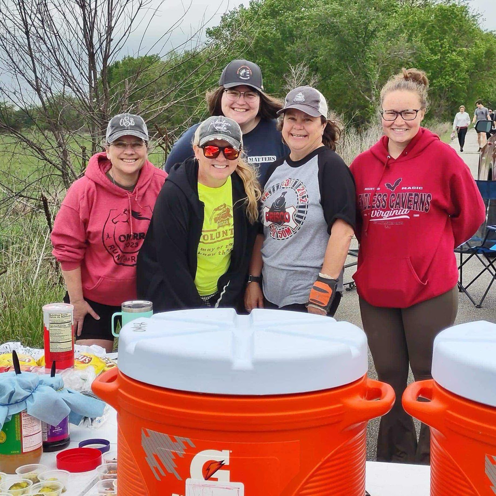I made the decision back during Bass Pro Marathon weekend (that’s us above at the 2023 BP marathon/half) to volunteer because I wanted to give back to the runners in the same way I was helped last year. The volunteers last year at the aid stations are the only reason I was able to finish the race at all and I was forever grateful for that experience. So I wanted to be able to be the person on the other side, helping people achieve their goals.